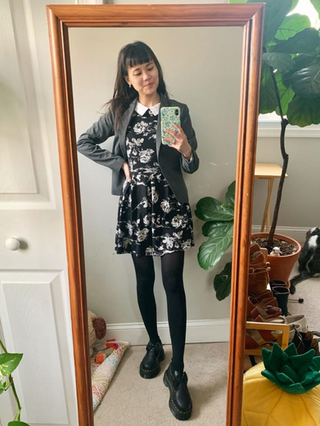 A dress that is fitted at the waist and gradually widens, giving the silhouette of an "A".